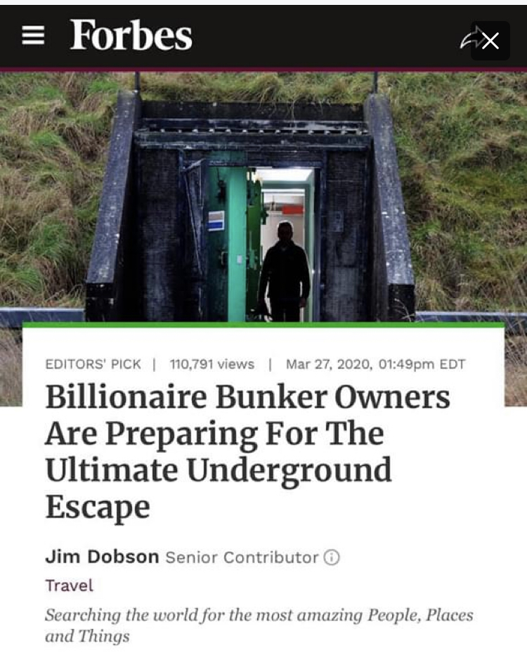 There are many articles and pictures of underground bunkers that the Global Elite have built should a doomsday scenario occur on the earth’s surface.