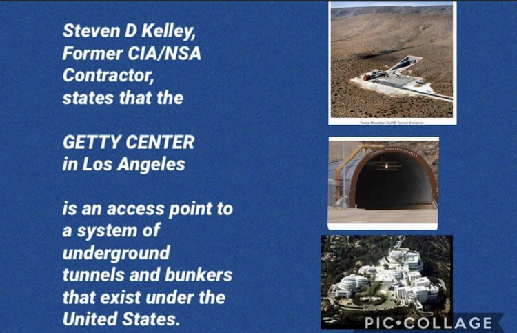 Steven D Kelley states that the Getty Museum provides an access point for a system of Underground tunnels and bunkers under the USA Posted on August 27, 2020 by idfritz Share this: Click to share on X (Opens in new window) X Click to share on Facebook (Opens in new window) Facebook Like Loading... Related